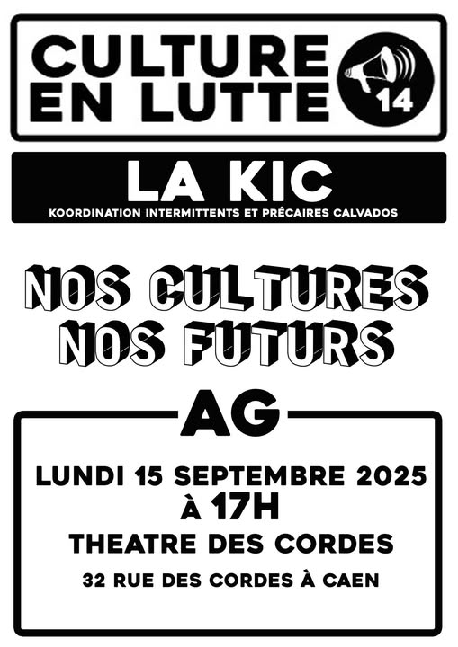 « Tous les Évènements Cet évènement est passé. Culture en Lutte : Assemblée Générale 15 septembre 2025 – 17h00 – 20h00 Théâtre des Cordes 32 rue des Cordes Caen, France Ajouter au calendrier Google Agenda iCalendar Outlook 365 Outlook Live